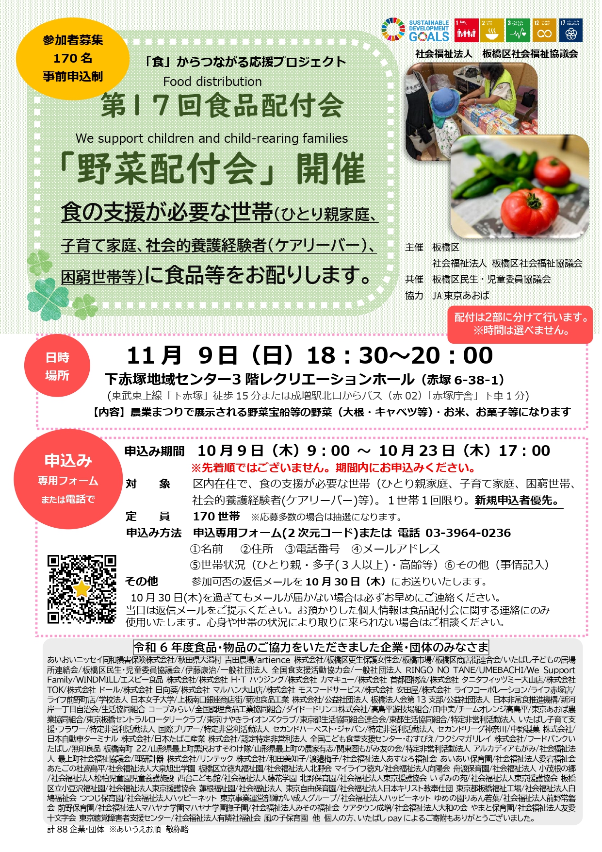 第17回食品配付会~野菜配付会~ 食品受取希望者募集!