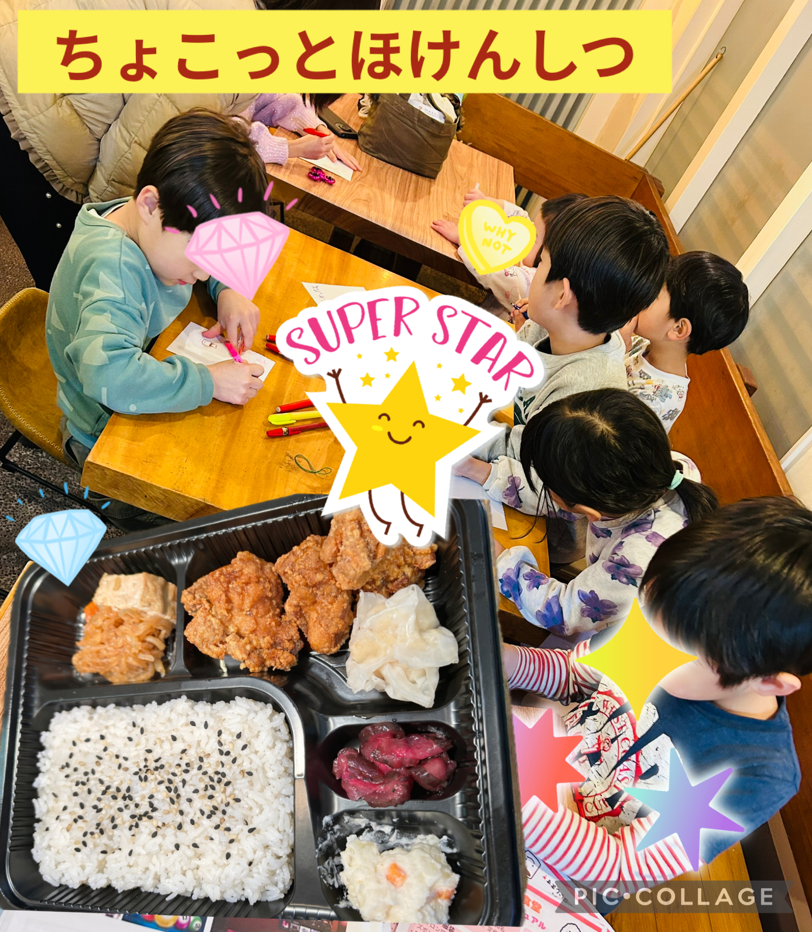 ごはん前も楽しく遊べるようにお迎えしています。ごはんの後は参加者様と楽しく過ごせるよう、レクリエーション、読み聞かせなどの活動をしています。
